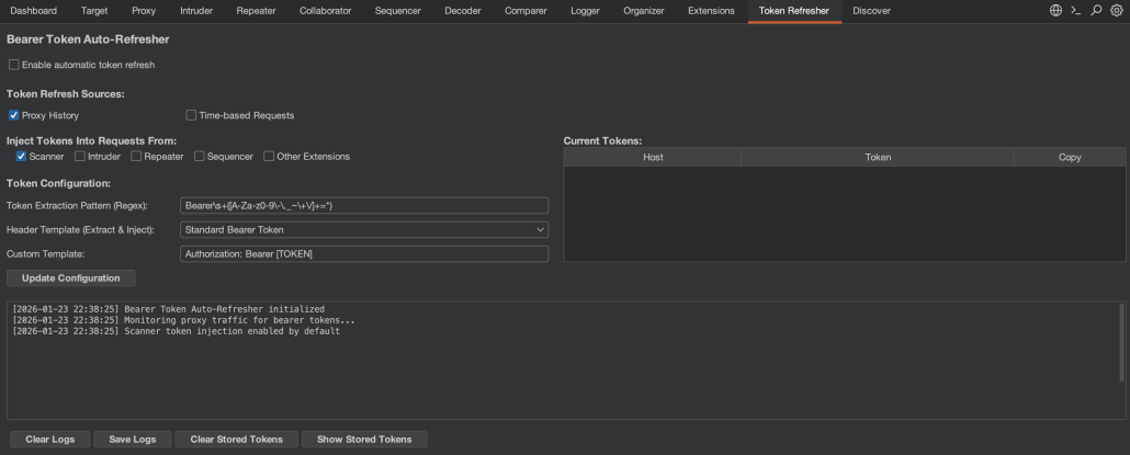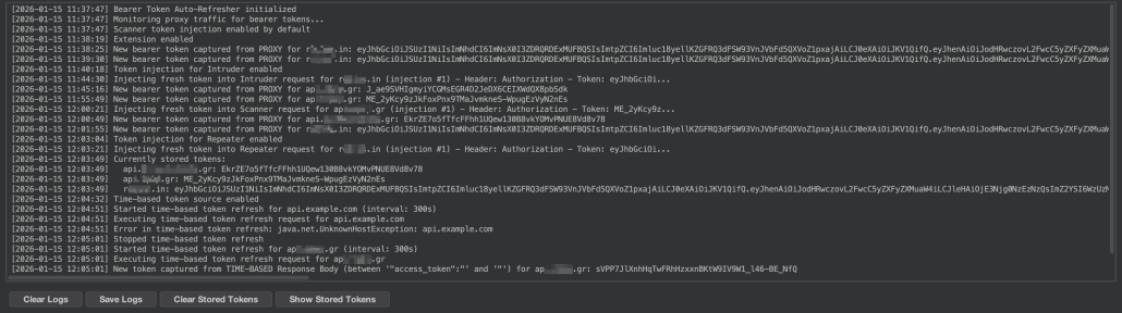 The Token Auto-Refresher extension was born from this need. Implemented as a Burp Suite extension using the Montoya API, it automatically captures, stores and injects fresh tokens into Burp's various tools, providing a streamlined alternative to complex macros and rules while ensuring continuous authentication throughout security assessments.